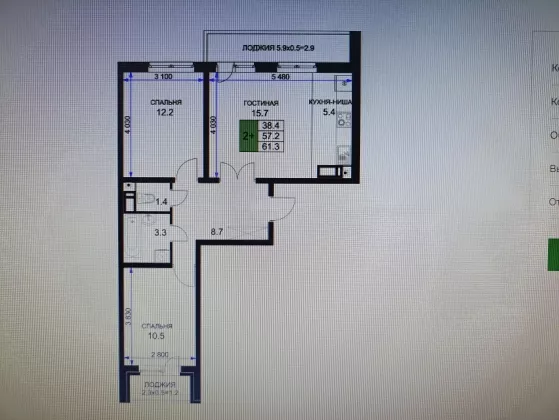 Продается 2-х комн. новостройка, 61.3 кв.м., 5/16 эт