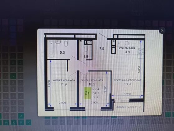 Продается 2-х комн. новостройка, 56 кв.м., 9/16 эт
