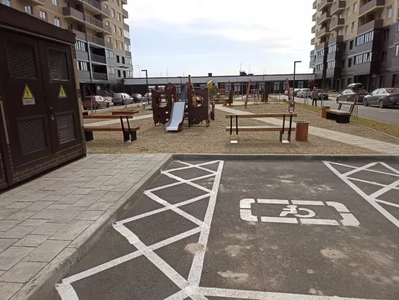 Широкие дворы, детские и спортивные площадки, множество коммерческих помещений.
