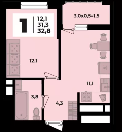 Продается однокомнатная новостройка, 32.8 кв.м., 5/8 эт