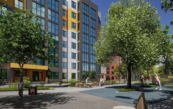 Красивые, зеленые дворы, детские и спортивные площадки, прогулочные аллеи.