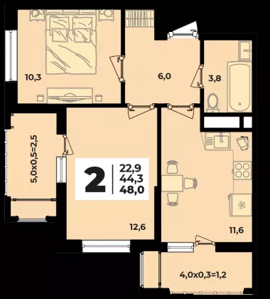 Продается 2-х комн. новостройка, 48 кв.м., 4/8 эт