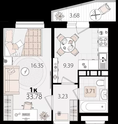 Продается однокомнатная новостройка, 33.78 кв.м., 7/12 эт