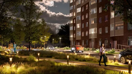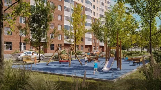 Дом класса комфорт, организована безбарьерная среда, детские и спортивные площадки, зеленая территория вокруг дома.