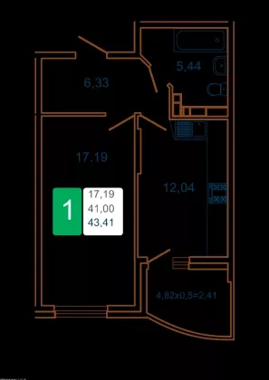 Продается однокомнатная новостройка, 43.41 кв.м., 10/16 эт