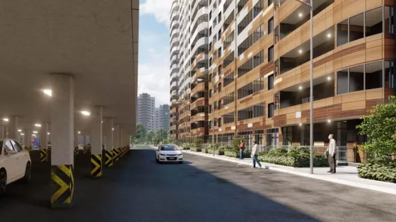 Безбарьерная среда, многоуровневый паркинг, детские и спортивные площадки, магазины, аптеки, остановка общественного транспорта на территории комплекса.