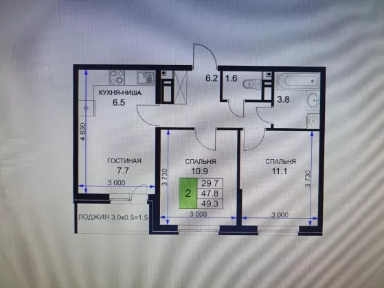 Продается 2-х комн. новостройка, 49.3 кв.м., 8/16 эт