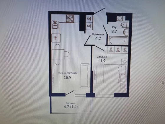Продается однокомнатная новостройка, 39 кв.м., 23/23 эт
