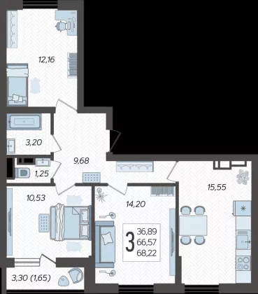 Продается 3-х комн. новостройка, 68.22 кв.м., 8/16 эт