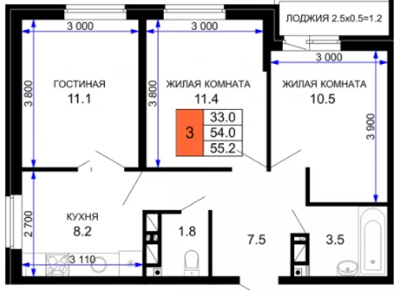 | Площадь, кв.м. | 55.2 |