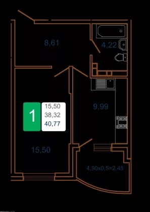 Продается однокомнатная новостройка, 42.35 кв.м., 13/16 эт