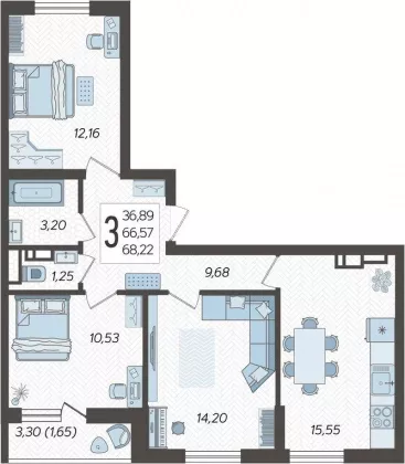 Продается 3-х комн. новостройка, 68.2 кв.м., 11/16 эт