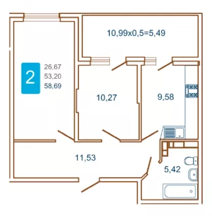 Продается 2-х комн. новостройка, 59 кв.м., 5/16 эт