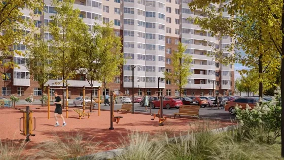Дом класса комфорт, организована безбарьерная среда, детские и спортивные площадки, зеленая территория вокруг дома.