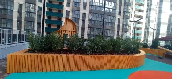 Шикарная придомовая территория, есть стилобат, паркинг для авто, мангальная зона, беседки, двор с ландшафтным озеленением