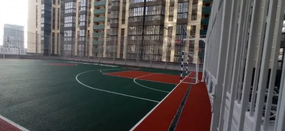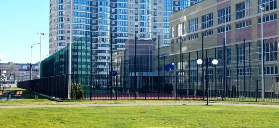 Для детей безопасная, огороженная детская площадка с футбольным полем