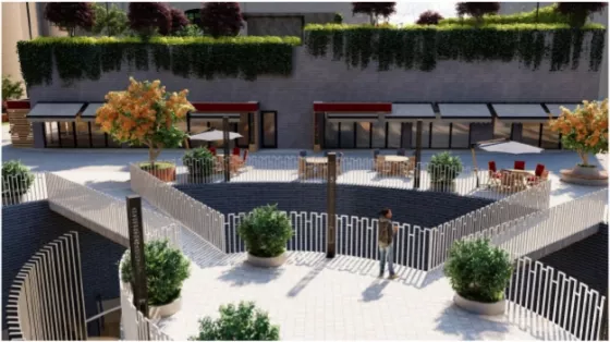 В комплексе эксплуатируемая кровля стилобата, и фитнес центра.