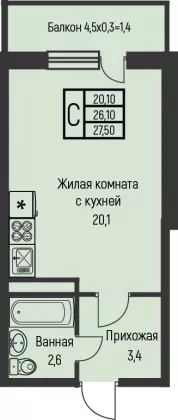 Продается Студия новостройка, 26.7 кв.м., 2/3 эт