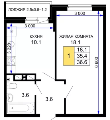 Продается однокомнатная новостройка, 36.6 кв.м., 11/16 эт