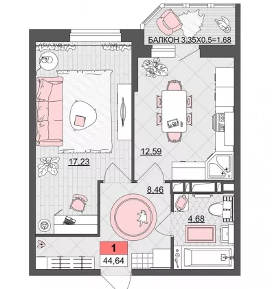 | Площадь, кв.м. | 44.64 |