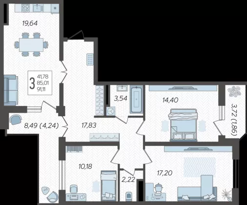 Продается 3-х комн. новостройка, 91 кв.м., 9/23 эт