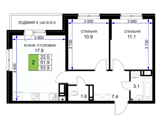 В избранное двухкомнатная квартира