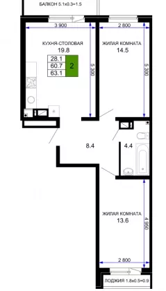 Продается 2-х комн. новостройка, 63.34 кв.м., 14/16 эт