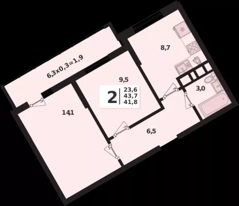 Продается 2-х комн. новостройка, 43.7 кв.м., 8/19 эт