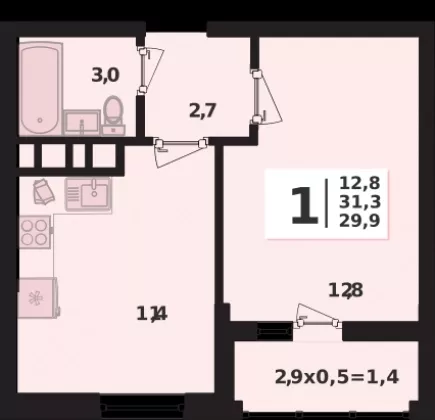 | Площадь, кв.м. | 31.3 |