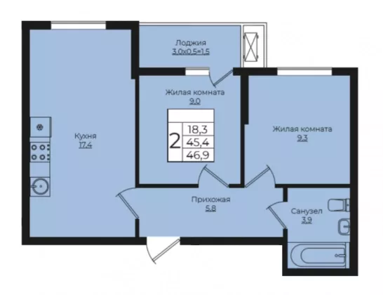 Продается 2-х комн. новостройка, 46.9 кв.м., 3/7 эт