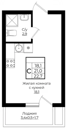 Продается Студия новостройка, 22.7 кв.м., 3/7 эт