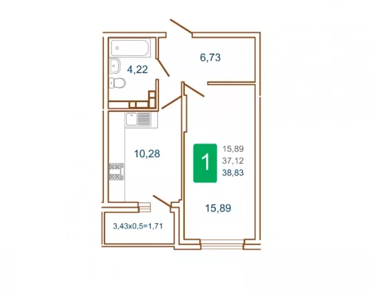 Продается однокомнатная новостройка, 45 кв.м., 13/16 эт