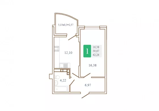 Продается однокомнатная новостройка, 40 кв.м., 14/16 эт