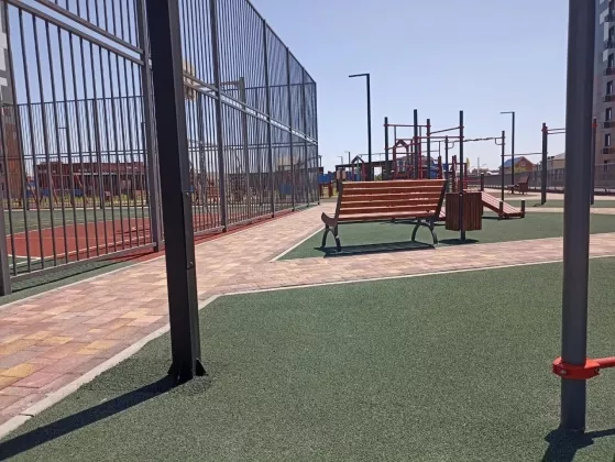 Безбарьерная среда, стилобат с детскими и спортивными площадками, магазины, аптеки, остановка общественного транспорта на территории комплекса.