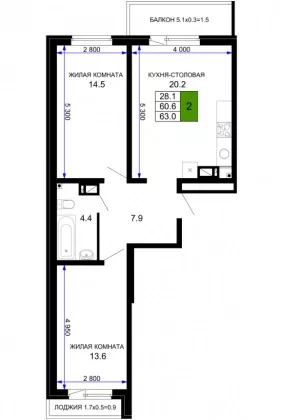 Продается 2-х комн. новостройка, 63.64 кв.м., 13/16 эт