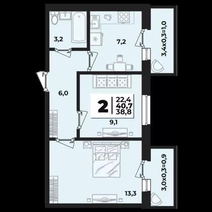 В избранное двухкомнатная квартира