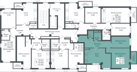 Продается 2-х комн. новостройка, 62.69 кв.м., 3/7 эт