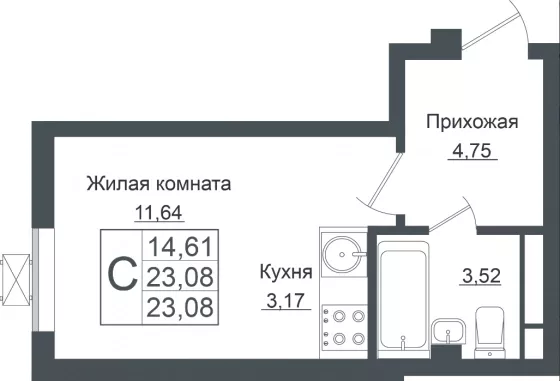 Продается Студия новостройка, 23.5 кв.м., 5/7 эт