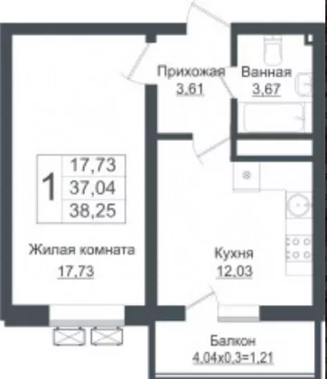 Продается однокомнатная новостройка, 38.25 кв.м., 12/16 эт