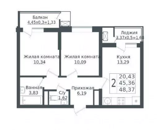 Продается 2-х комн. новостройка, 48.37 кв.м., 12/16 эт