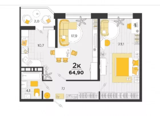 Продается 2-х комн. новостройка, 64.9 кв.м., 6/23 эт