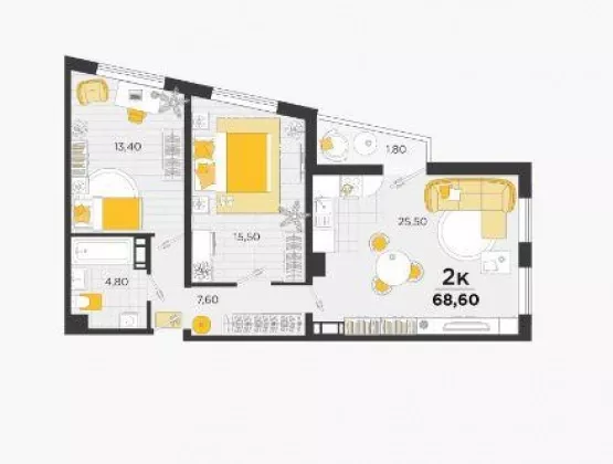 Продается 2-х комн. новостройка, 68.6 кв.м., 8/23 эт