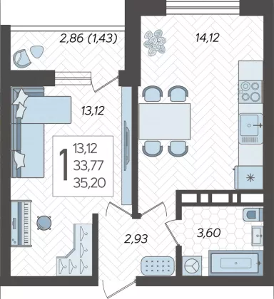 Продается однокомнатная новостройка, 35.2 кв.м., 4/16 эт