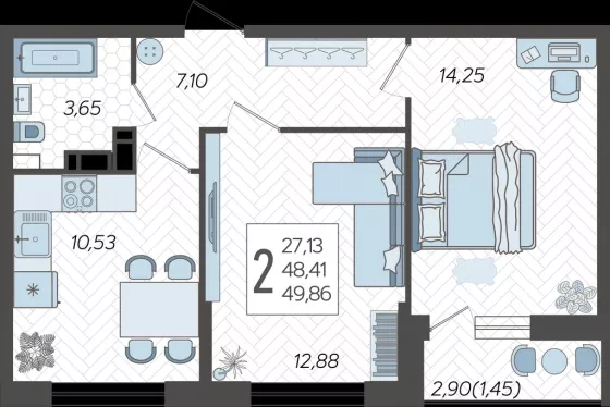 Продается 2-х комн. новостройка, 49.86 кв.м., 6/16 эт