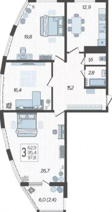 Продается 3-х комн. новостройка, 97.8 кв.м., 11/24 эт