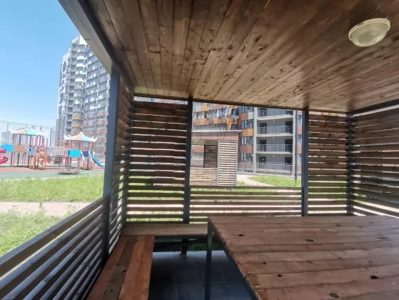 На территории комплекса собственный парк, аллея, два детских сада, школа и поликлиника...