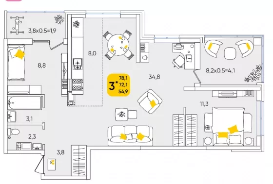 Продается 3-х комн. новостройка, 77.5 кв.м., 17/24 эт