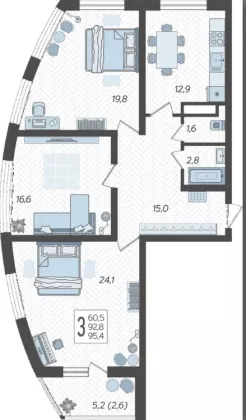 Продается 3-х комн. новостройка, 95.4 кв.м., 12/24 эт