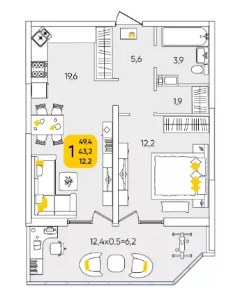 | Площадь кухни, кв.м. | 19.6 |