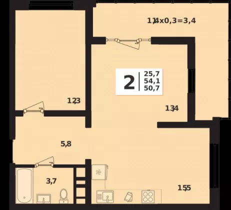 Продается 2-х комн. новостройка, 54.1 кв.м., 2/19 эт